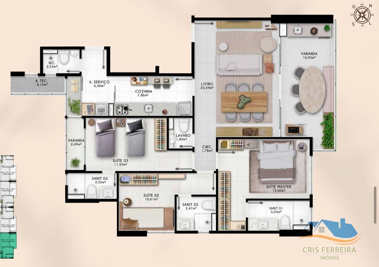 Apartamento 3 quartos – Andar alto, Vista mar, Torre 2 , VIVANT