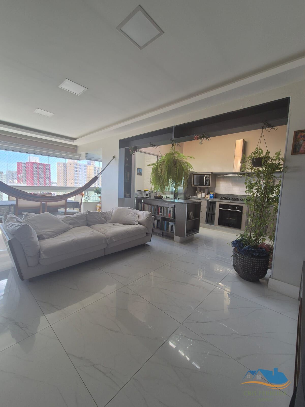 - Sala e cozinha integradas em conceito aberto